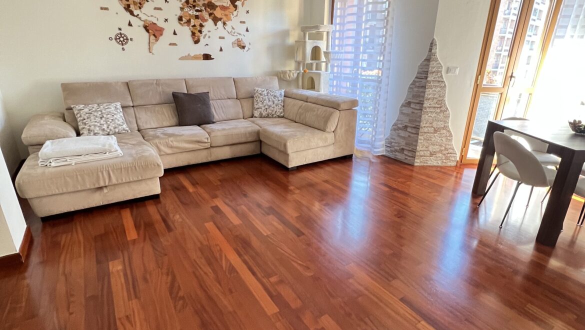Splendido appartamento di mq. 110ca. così composto: ingresso, soggiorno con uscita sul balcone, cucina abitabile con balcone, due camere matrimoniali, doppi servizi entrambi finestrati e cantina. Ottime finiture interne, parquet in tutta la casa, doppi vetri, zanzariere ed impianto aria condizionata canalizzata. Tripla esposizione. Libero a breve!
